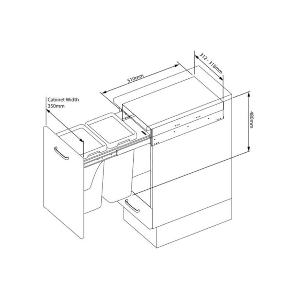 An easy to install side-mounted bin with 36L capacity made up of of 2x 18L bins, designed to fit in a cabinet width of 350mm.